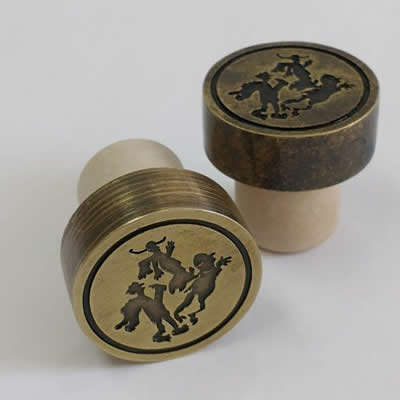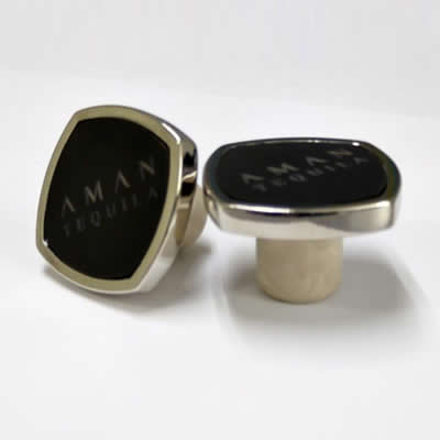 Even we are Co-Injecting the cork inside these zamak tops. Same idea! The cork won´t detach from your premium zamak stopper. Many tops or caps have been made in brass (press) and aluminum (turnstile).